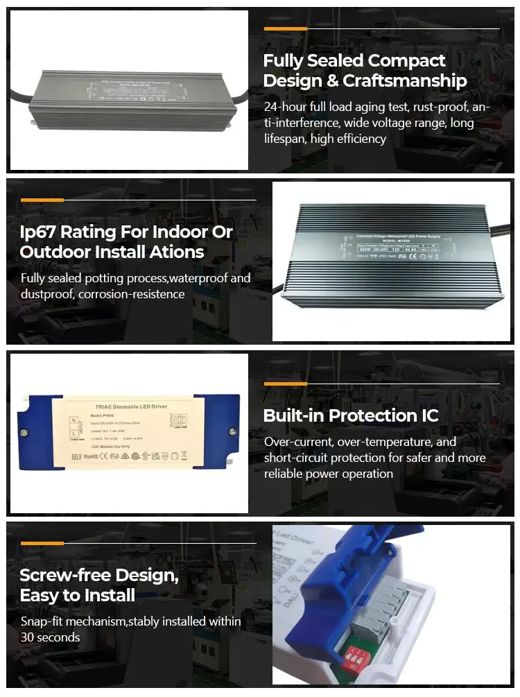 STARWELL ຄຸນະພາບສູງ 1200mA Constant Current Waterproof Driver, ອອກແບບໂດຍສະເພາະສໍາລັບການຕິດຕັ້ງໄຟ LED ໃນສະພາບແວດລ້ອມກາງແຈ້ງ / ຊຸ່ມຊື່ນ, ເຫມາະສົມກັບໄຟຖະຫນົນ 10-40W, ໄຟສວນ, ໄຟໃຕ້ນ້ໍາ, ກ່ອງໄຟໂຄສະນາແລະສະຖານະການອື່ນໆທີ່ຫຼາກຫຼາຍ. ການຮັບຮອງເອົາຊິບປະຈຸບັນຄົງທີ່ທີ່ມີຄວາມແມ່ນຍໍາສູງ, ຄວາມຜິດພາດໃນປະຈຸບັນຜົນຜະລິດແມ່ນ≤± 3%, ຢ່າງຖືກຕ້ອງແລະຫມັ້ນຄົງຮັກສາຢູ່ທີ່ 1200mA, ພື້ນຖານການກໍາຈັດ flicker (ຄວາມເລິກ flicker <5%) ແລະບັນຫາການທໍາລາຍແສງສະຫວ່າງ, ເຊິ່ງສາມາດຍືດອາຍຸການບໍລິການຂອງອຸປະກອນ LED ໄດ້ຫຼາຍກ່ວາ 30%; ມາພ້ອມກັບເທັກໂນໂລຍີການປະທັບຕາກັນນໍ້າ IP67 + ເທັກໂນໂລຍີການຕິດຝາກັນນໍ້າ, ລະດັບການກັນນໍ້າບໍ່ຮົ່ວໄຫຼ 30 ນາທີ ຢູ່ທີ່ນໍ້າໃຕ້ນໍ້າ 1 ແມັດ, ສາມາດຮັບມືກັບສະພາບແວດລ້ອມທີ່ຮຸນແຮງເຊັ່ນ: ຝົນ, ນໍ້າກະແຈກກະຈາຍ ແລະ ຂີ້ຝຸ່ນ, ມີອາຍຸການເຮັດວຽກຢ່າງຕໍ່ເນື່ອງພາຍນອກຫຼາຍກວ່າ 50,000 ຊົ່ວໂມງ, ເຮັດໃຫ້ມັນມີຄວາມຫນ້າເຊື່ອຖືໃນການນໍາໃຊ້ໃນໄລຍະຍາວ.