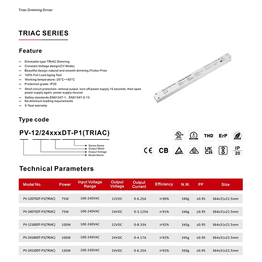 ການປະຕິບັດແບບພິເສດສໍາລັບຄໍາຮ້ອງສະຫມັກທີ່ຕ້ອງການ ໄດເວີນໍາທາງ 24V dimmable ໄດ້ຖືກສ້າງຂື້ນໂດຍປະມານສະເພາະດ້ານວິຊາການ. ມັນປະກອບດ້ວຍການປ້ອນຂໍ້ມູນ AC ທົ່ວໄປ (100-250V), ຮັບປະກັນຄວາມເຂົ້າກັນໄດ້ກັບຕາຂ່າຍໄຟຟ້າທົ່ວໂລກ. ດ້ວຍປະສິດທິພາບສູງເຖິງ 90% ແລະການແກ້ໄຂປັດໄຈພະລັງງານ (PFC) ມັກຈະເກີນ 0.95, ມັນຫຼຸດຜ່ອນການເສຍພະລັງງານ ແລະຫຼຸດຜ່ອນການໂຫຼດໃນລະບົບໄຟຟ້າຂອງທ່ານ. ຫຼັກຂອງການເຮັດວຽກຂອງມັນແມ່ນເທັກໂນໂລຍີການຫຼຸດແສງ TRIAC (ໄລຍະ-ຕັດ) ຂັ້ນສູງ, ເຊິ່ງເຮັດໃຫ້ການຫຼຸດແສງທີ່ລຽບ, ໂດຍບໍ່ມີແສງ flicker ຈາກ 0% ຫາ 100% ເມື່ອຈັບຄູ່ກັບ dimmers ຝາມາດຕະຖານ, ເຮັດໃຫ້ການສ້າງບັນຍາກາດທີ່ສົມບູນແບບ. ສໍາລັບຄວາມທົນທານໃນສະພາບແວດລ້ອມຕ່າງໆ, ມັນໄດ້ຖືກສະຫນອງໃຫ້ຢູ່ໃນ enclosures ຕັ້ງແຕ່ມາດຕະຖານ IP20 ກັບເຮືອນອາລູມິນຽມລະດັບ IP67 ທີ່ເຂັ້ມແຂງ, ປ້ອງກັນຝຸ່ນແລະຄວາມຊຸ່ມຊື່ນສໍາລັບການນໍາໃຊ້ທັງພາຍໃນແລະພາຍນອກ.