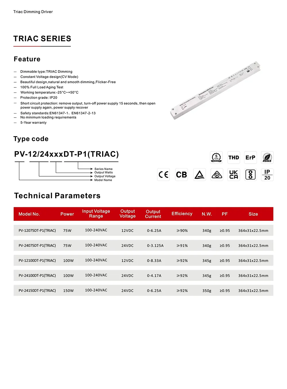 Starwell Constant Voltage Triac dimmable Led Driver Specification: