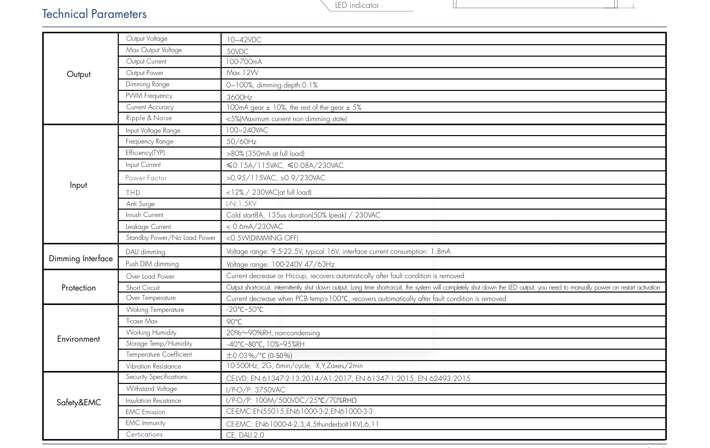 ການປົກປ້ອງອັດສະລິຍະ & ຄວາມທົນທານ: ມີອຸປະກອນປ້ອງກັນ overvoltage, overload, short-circuit, ແລະ overheat (110 ℃ trigger) ການປົກປ້ອງ; ອາຍຸການໃຊ້ງານ 100,000 ຊົ່ວໂມງຢູ່ທີ່ 75 ℃.