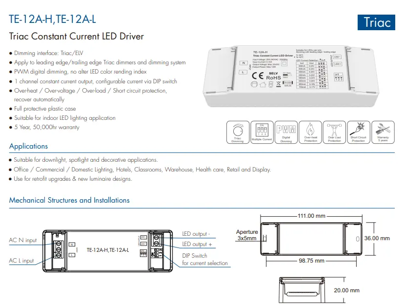Starwell high quality 12W constant current triac dimming led driver integrates overvoltage, overcurrent and short-circuit function protection, and features high power factor and low harmonic distortion, ຕອບສະຫນອງຫຼາຍປະສິດທິພາບພະລັງງານສາກົນແລະມາດຕະຖານຄວາມປອດໄພ. ການອອກແບບທີ່ຫນາແຫນ້ນຂອງມັນເຮັດໃຫ້ມັນງ່າຍຕໍ່ການຕິດຕັ້ງແລະເຫມາະສົມສໍາລັບສະຖານະການເຮັດໃຫ້ມີແສງພາຍໃນເຮືອນຕ່າງໆເຊັ່ນ: ໂຄມໄຟ, ໂຄມໄຟ, ແລະໄຟຕົກແຕ່ງ, ເຮັດໃຫ້ມັນເປັນການແກ້ໄຂໄດເວີທີ່ເຫມາະສົມສໍາລັບການສ້ອມແປງແບບປະຫຍັດພະລັງງານແລະການນໍາໃຊ້ແສງສະຫຼາດ. ຜະລິດຕະພັນຄຸນສົມບັດ: