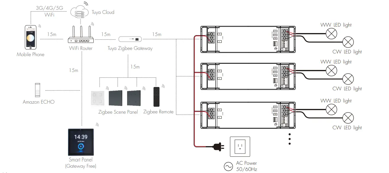 ໄດເວີ LED TUYA Zigbee ຮອງຮັບໂປຣໂຕຄໍ TUYA Zigbee ຢ່າງສົມບູນແບບສໍາລັບການເຊື່ອມຕໍ່ໄຮ້ສາຍທີ່ໝັ້ນຄົງ, ບັນລຸ CCT ທີ່ບໍ່ມີການສັ່ນສະເທືອນ ແລະການຫຼຸດຄວາມສະຫວ່າງ. ມັນສະຫນັບສະຫນູນການຄວບຄຸມ APP, ການຄວບຄຸມສຽງ, ການຄວບຄຸມກຸ່ມແລະຮູບແບບ scene, ເຮັດໃຫ້ຄວາມສະດວກທີ່ດີກັບລະບົບແສງສະຫຼາດ.