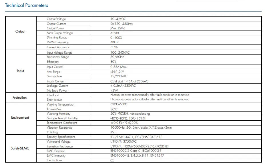 ດ້ວຍການປ້ອນຂໍ້ມູນທົ່ວໄປຂອງ 100~240VAC, CCT Dimmable LED Driver ປັບຕົວເຂົ້າກັບຕາຂ່າຍໄຟຟ້າທົ່ວໂລກ. ປະສິດທິພາບສູງເຖິງ 85% ແລະປັດໄຈພະລັງງານ≥0.90 ຕ່ໍາການບໍລິໂພກພະລັງງານແລະການຜະລິດຄວາມຮ້ອນ, ຂະຫຍາຍທັງສອງໄດເວີແລະ LED lifespan.