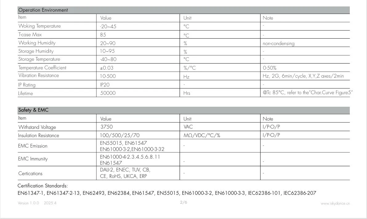 ການໂຕ້ຕອບການ dimming 0/1-10V dimming: Dimming range 0-10V ຫຼື 1-10V, dimming connector ການບໍລິໂພກໃນປະຈຸບັນ ≤ 0.3 mA, dimming curve ອ້າງເຖິງ "Char.curve ຮູບ 6-7", ເສັ້ນໂຄ້ງ CCT ອ້າງອີງເຖິງ “ເສັ້ນໂຄ້ງ Char. ຮູບ 8”. Push switch dimming: ຊ່ວງແຮງດັນ 220~240VAC 50/60Hz.