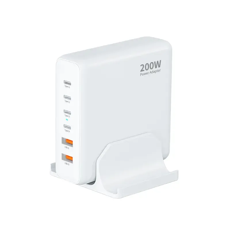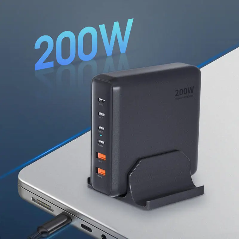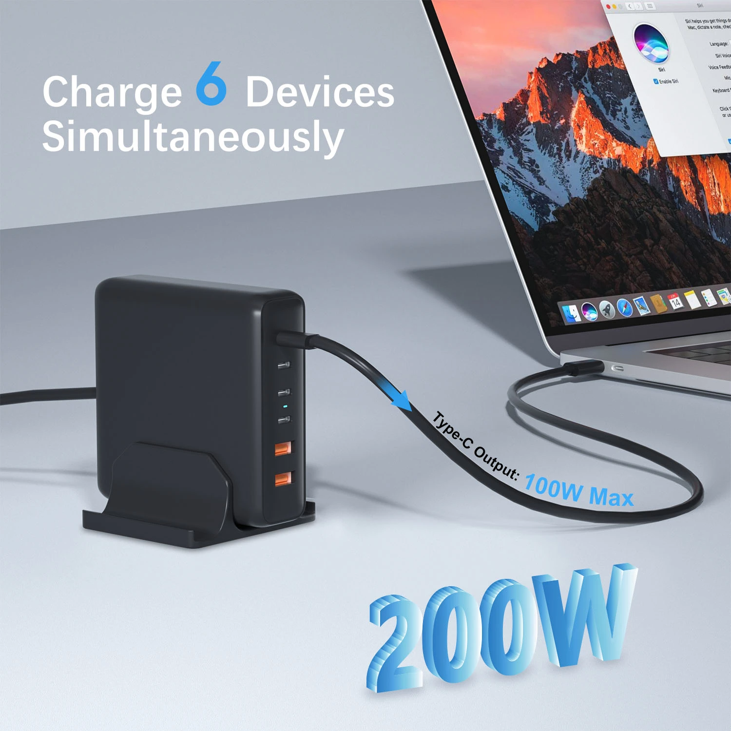 Gan 200W ເຄື່ອງສາກໄຟໄວ 4 USB-C + 2 USB-A 200W PD Charger