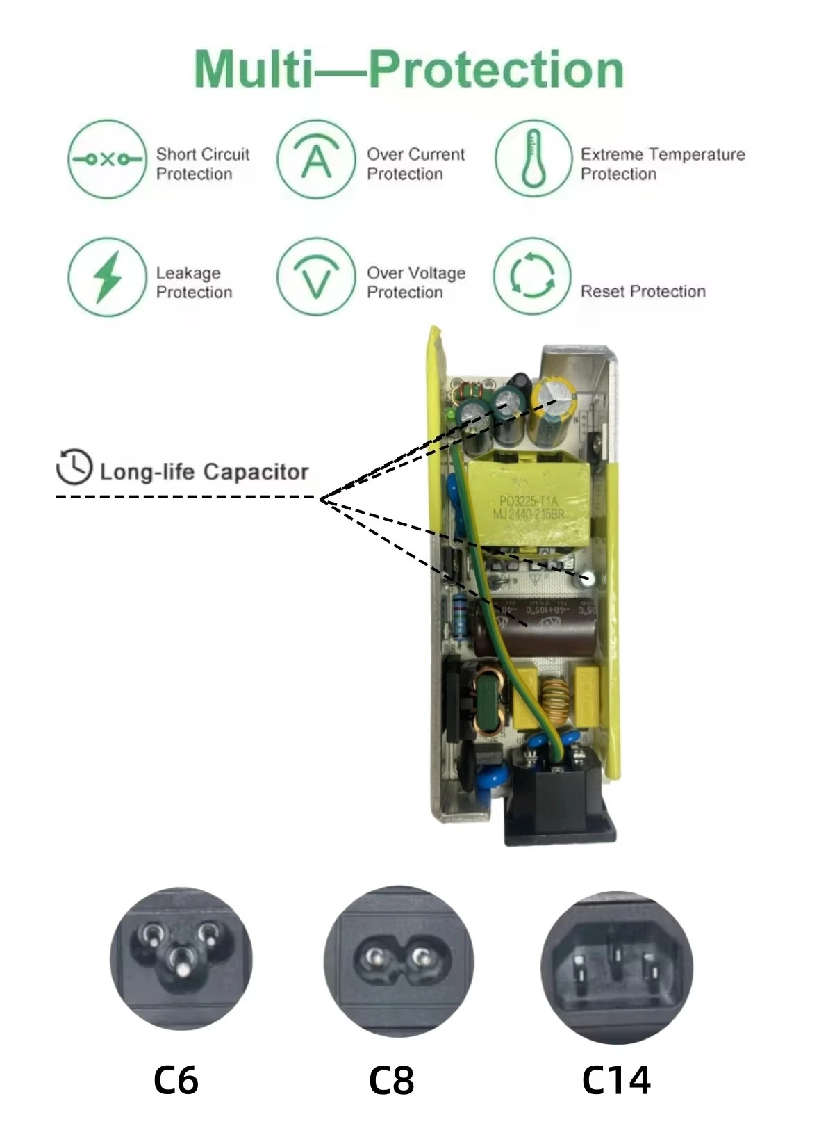 ການປົກປ້ອງຄວາມປອດໄພທີ່ສົມບູນແບບ: ການປົກປ້ອງແບບປະສົມປະສານລວມທັງການປົກປ້ອງ over-Current (OCP), Over-Voltage Protection (OVP), ແລະ Short-Circuit Protection (SCP) ປ້ອງກັນຄວາມເສຍຫາຍຂອງທັງອະແດບເຕີແລະອຸປະກອນທີ່ມີຄຸນຄ່າຂອງທ່ານ.