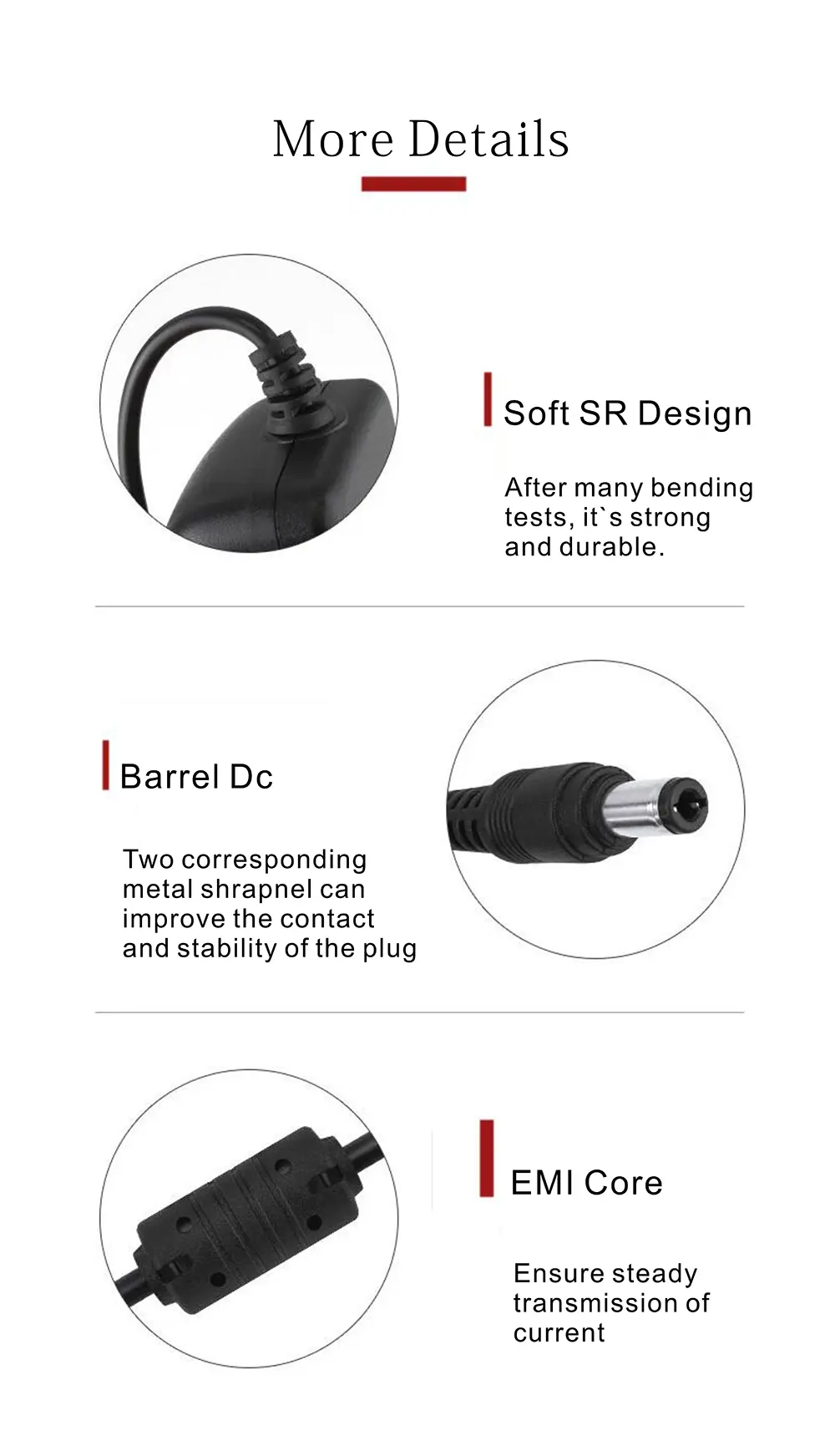 3. Connector Fit: ຢືນຢັນຂະໜາດຂອງປລັກສຽບ (ເຊັ່ນ: 5.5mm x 2.1mm) ແລະ polarity (ມັກຈະເປັນຈຸດກາງ) ກົງກັບ Jack DC ຂອງອຸປະກອນຂອງທ່ານ. ຄວາມບໍ່ສອດຄ່ອງສາມາດເຮັດໃຫ້ເກີດຄວາມເສຍຫາຍ.