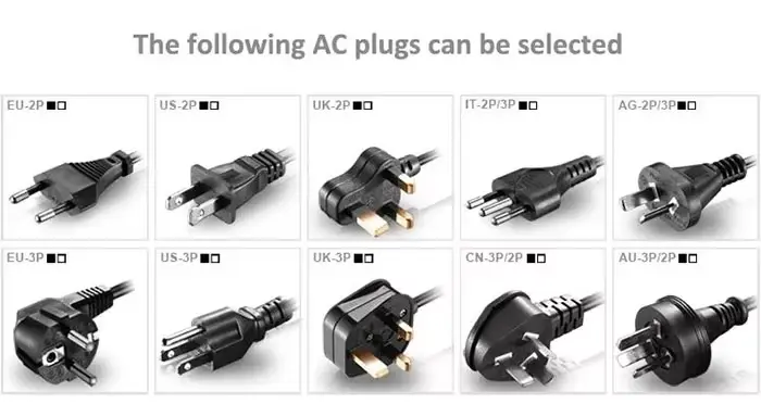 ສາຍໄຟ AC (ປລັກສະເພາະພາກພື້ນທີ່ມີຢູ່: US, EU, UK, AU, ແລະອື່ນໆ)