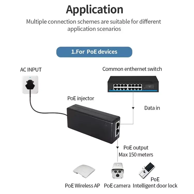 ນີ້ Indoor 24W Poe Repeater Standard 10/100/1000Mbps POE Extender ເປັນການແກ້ໄຂການສະຫນອງພະລັງງານທີ່ປະຫຍັດທີ່ເຫມາະສົມສໍາລັບການຄຸ້ມຄອງເຄືອຂ່າຍໄຮ້ສາຍແລະລະບົບການຕິດຕາມຄວາມປອດໄພ. ໃນຖານະເປັນອຸປະກອນສະຫນອງພະລັງງານ repeater PoE ພາຍໃນ, ມັນສາມາດຖືກນໍາໃຊ້ຮ່ວມກັນກັບຕົວຂະຫຍາຍ PoE ມາດຕະຖານ 10/100/1000Mbps ເພື່ອບັນລຸການສົ່ງສັນຍານເຄືອຂ່າຍໃນໄລຍະຍາວ. ການສະຫນອງພະລັງງານນີ້ຮັບຮອງເອົາເຕັກໂນໂລຢີການສະຫນອງພະລັງງານແບບ passive, ກໍາຈັດຄວາມຕ້ອງການຂອງຂະບວນການເຈລະຈາການຈັບມືທີ່ສັບສົນ, ແລະສະຫນອງພະລັງງານໂດຍກົງກັບອຸປະກອນຫ່າງໄກສອກຫຼີກໂດຍຜ່ານສາຍ Ethernet. ມັນເຫມາະສົມໂດຍສະເພາະສໍາລັບ APs ໄຮ້ສາຍ, ຂົວກາງແຈ້ງ, ແລະອຸປະກອນສາຍສົ່ງຈຸດຫາຈຸດທີ່ສະຫນັບສະຫນູນການສະຫນອງພະລັງງານ PoE passive.
