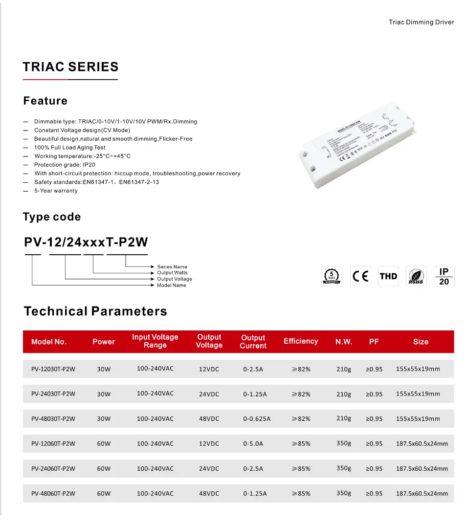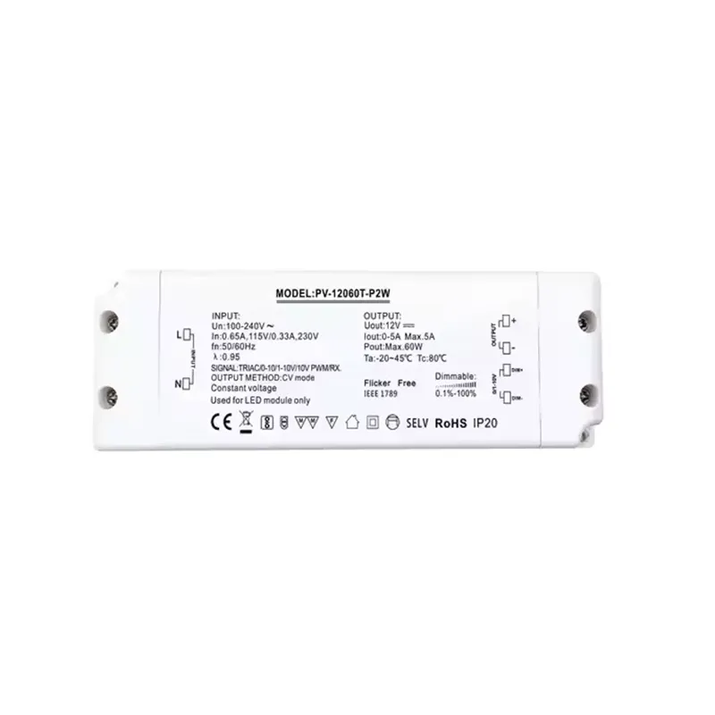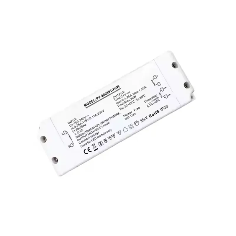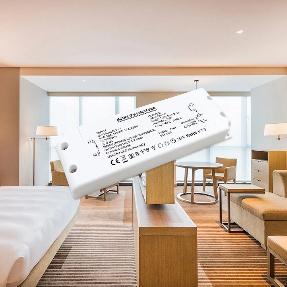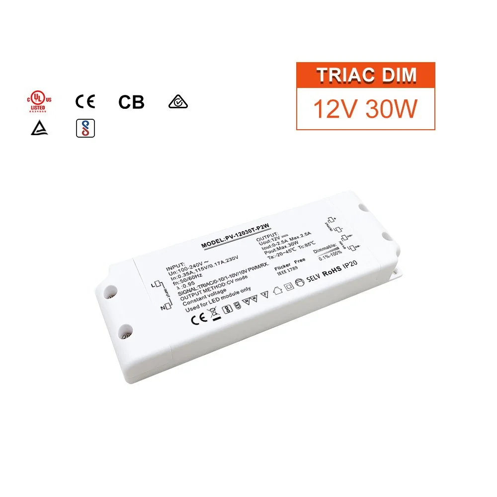 ໃນຖານະທີ່ເປັນຕົວຄວບຄຸມການສະຫນອງແຮງດັນຄົງທີ່ຄົງທີ່ Triac dimming, ມັນສະຫນອງແຮງດັນໄຟຟ້າ 12V DC ຄົງທີ່. ການສະຫນອງພະລັງງານ 12V 30W triac dimmable ນີ້ຮັບຮອງເອົາອົງປະກອບທີ່ມີຄຸນນະພາບສູງແລະການອອກແບບວົງຈອນແບບພິເສດ, ຮັບປະກັນແຮງດັນຜົນຜະລິດທີ່ຫມັ້ນຄົງຕະຫຼອດໄລຍະການ dimming ຢ່າງເຕັມທີ່ແລະພື້ນຖານການລົບລ້າງການ flickering ຂອງແສງ. ມັນເປັນຕົວຂັບເຄື່ອນ triac dimming ທີ່ບໍ່ມີ flicker ຢ່າງແທ້ຈິງສໍາລັບການນໍາໃຊ້ພາຍໃນ. ຄຸນນະສົມບັດທີ່ບໍ່ flickering ຂອງມັນບໍ່ພຽງແຕ່ສ້າງສະພາບແວດລ້ອມສາຍຕາທີ່ສະດວກສະບາຍແລະມີສຸຂະພາບດີ, ແຕ່ຍັງປົກປ້ອງແຫຼ່ງແສງສະຫວ່າງ LED ທີ່ລະອຽດອ່ອນແລະໂມດູນ, ຂະຫຍາຍອາຍຸການລວມຂອງອຸປະກອນເຮັດໃຫ້ມີແສງ.