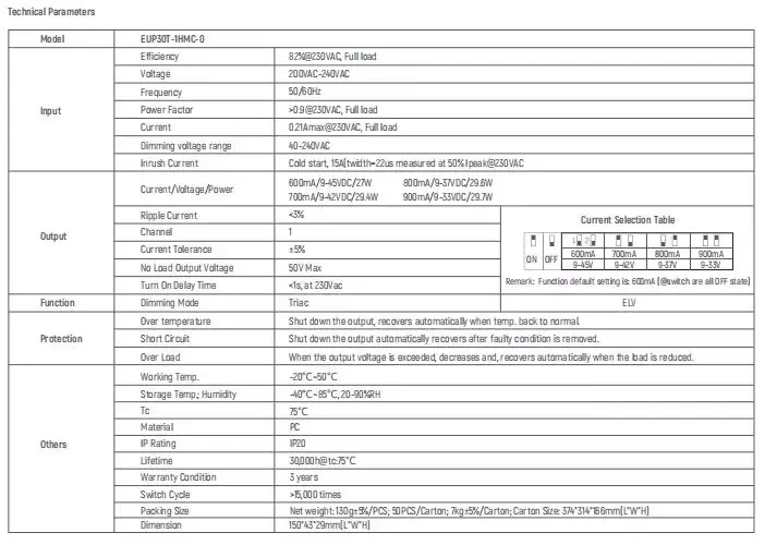 ໃນຖານະເປັນຜູ້ຜະລິດມືອາຊີບແລະຜູ້ສະຫນອງການຂັບລົດນໍາພາໃນປະເທດຈີນ, 30W Triac dimming LED Driver Constant Current ຂອງພວກເຮົາແມ່ນອຸປະກອນແປງພະລັງງານທີ່ຖືກອອກແບບມາໂດຍສະເພາະສໍາລັບລະບົບໄຟ LED ທີ່ມີພະລັງງານຂະຫນາດກາງຫາສູງ. ມັນຮັບຮອງເອົາເທກໂນໂລຍີການຄວບຄຸມຄົງທີ່ກ້າວຫນ້າເພື່ອຮັບປະກັນການດໍາເນີນງານທີ່ຫມັ້ນຄົງຂອງລູກປັດ LED ໃນອັດຕາປະຈຸບັນ, ປະສິດທິຜົນຂະຫຍາຍຊີວິດຂອງໂຄມໄຟແລະປັບປຸງຄວາມສອດຄ່ອງຂອງແສງສະຫວ່າງ. ໄດເວີທີ່ເຮັດໃຫ້ມີແສງແບບຄົງທີ່ໃນປັດຈຸບັນແມ່ນເຫມາະສົມສໍາລັບສະຖານະການເຮັດໃຫ້ມີແສງທີ່ມີຄວາມຕ້ອງການສູງເຊັ່ນ: ແສງສະຫວ່າງການຄ້າ, ແສງສະຫວ່າງອຸດສາຫະກໍາ, ດອກໄຟກາງແຈ້ງ, ແລະໄຟການຂະຫຍາຍຕົວຂອງພືດ.