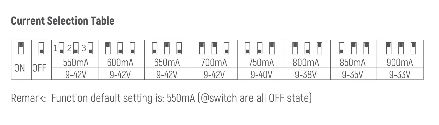ປະຈຸບັນຜົນຜະລິດ: ສາມາດປັບໄດ້, ເບິ່ງຕາຕະລາງການຄັດເລືອກປະຈຸບັນສໍາລັບລາຍລະອຽດ