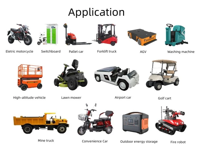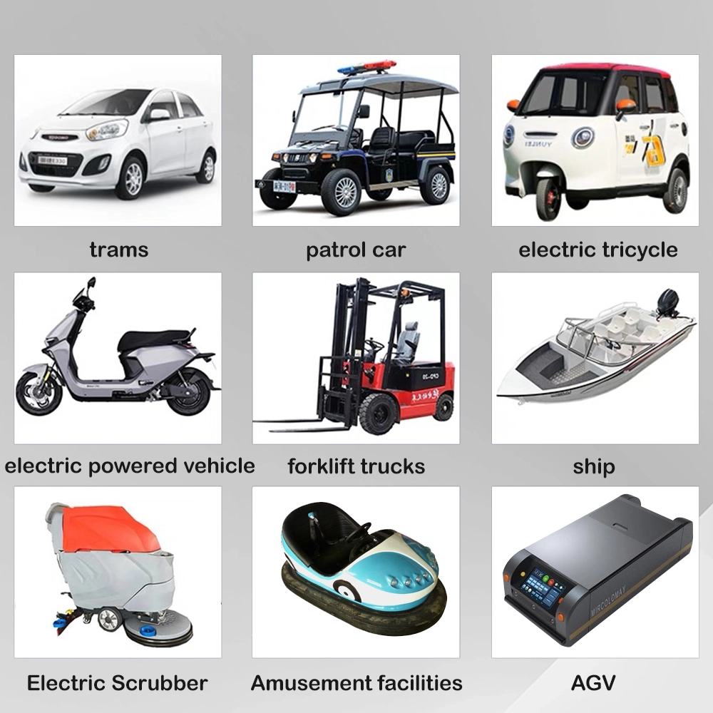 ຄໍາຮ້ອງສະຫມັກຜະລິດຕະພັນ ລົດຕຳກັນໄຟຟ້າ ແລະ ຂີ່ລົດບັນເທິງ ພາຫະນະທັດສະນະພາບແລະລົດກອຟ ພາຫະນະລາດຕະເວນ ແລະລົດເຂັນຮັກສາຄວາມປອດໄພ Forklifts ແລະອຸປະກອນການຈັດການວັດສະດຸ ເຄື່ອງຂັດພື້ນ ແລະເຄື່ອງທຳຄວາມສະອາດ ຍານພາຫະນະນໍາພາອັດຕະໂນມັດ (AGVs) ສໍາລັບສາງ ເຮືອໄຟຟ້າ, ເຮືອ, ແລະເຮືອອຸປະກອນທາງທະເລ