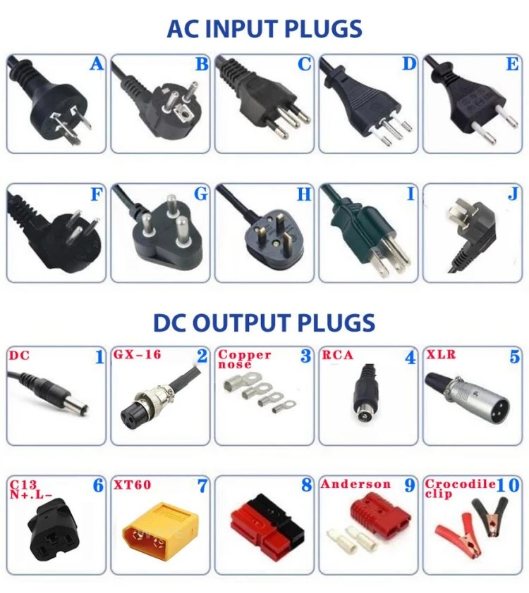 · ຮອງຮັບອາຊິດຂີ້ກົ່ວ (ນ້ຳຖ້ວມ, AGM, gel), lithium-ion (LiFePO₄), Ni-MH, ແລະ Ni-Cd ຫມໍ້ໄຟ