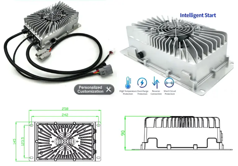 ເຄື່ອງສາກໄຟ 480W OBC 24V 15A ແມ່ນດີເລີດສຳລັບລົດໄຟຟ້າ, ລົດຈັກ, ພາຫະນະທ່ອງທ່ຽວ, ລົດຍົກ, ເຮືອທະເລ ແລະເຄື່ອງຈັກອຸດສາຫະກຳ. ການອອກແບບທີ່ທົນທານແລະການສະຫນັບສະຫນູນແບດເຕີລີ່ກວ້າງເຮັດໃຫ້ມັນເປັນທາງເລືອກທີ່ມັກສໍາລັບຜູ້ຜະລິດ, ຜູ້ສະຫນອງ, ແລະໂຮງງານຜະລິດທີ່ຊອກຫາການປັບປຸງລະບົບການສາກໄຟ EV ດ້ວຍປະສິດທິພາບທີ່ເຊື່ອຖືໄດ້.