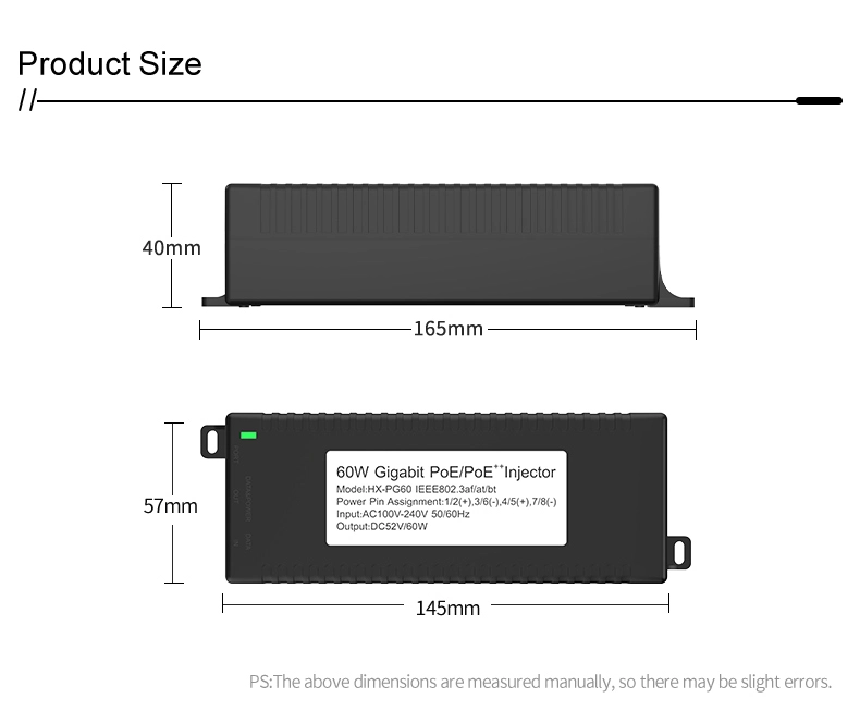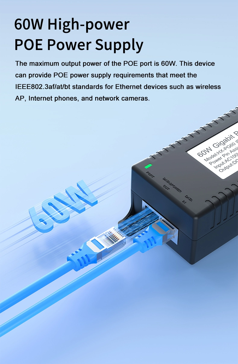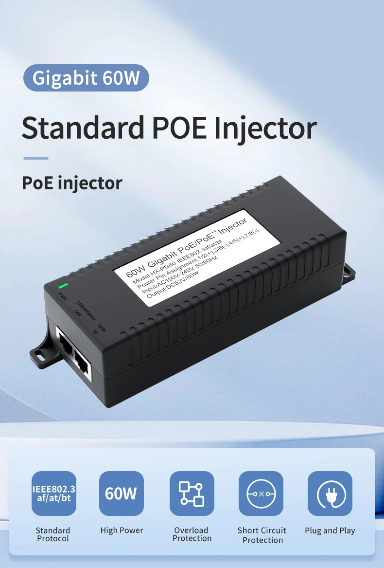 Gigabit 60W ມາດຕະຖານ POE Injector |