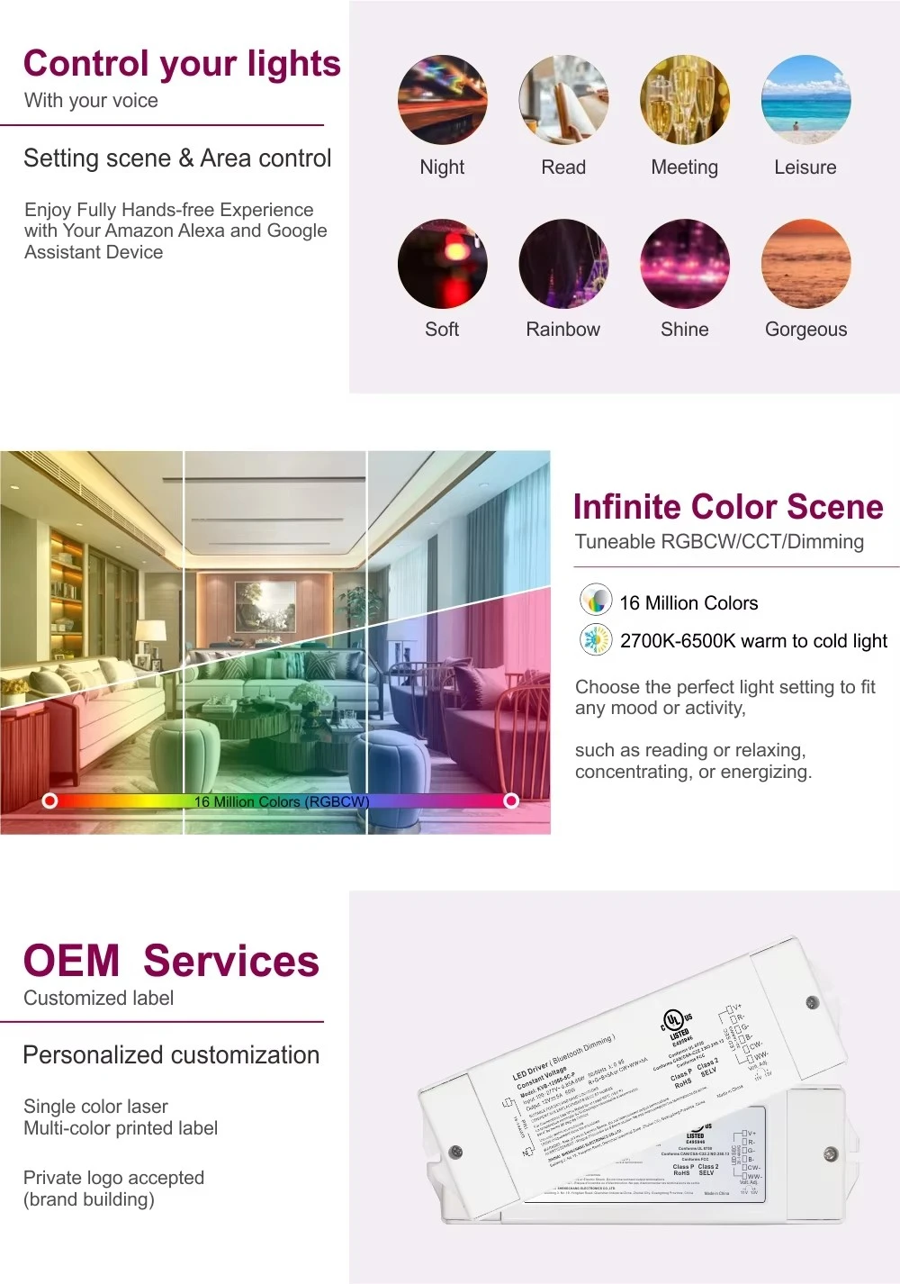 ເໝາະສຳລັບການນຳໃຊ້ໄຟ LED ທີ່ຫຼາກຫຼາຍ, ໄດເວີນີ້ປະສົມປະສານການເຊື່ອມຕໍ່ອັດສະລິຍະດ້ວຍປະສິດທິພາບທີ່ແຂງແຮງ ແລະໄດ້ຮັບການສະໜັບສະໜູນຈາກການຮັບປະກັນ 5 ປີເຕັມ.