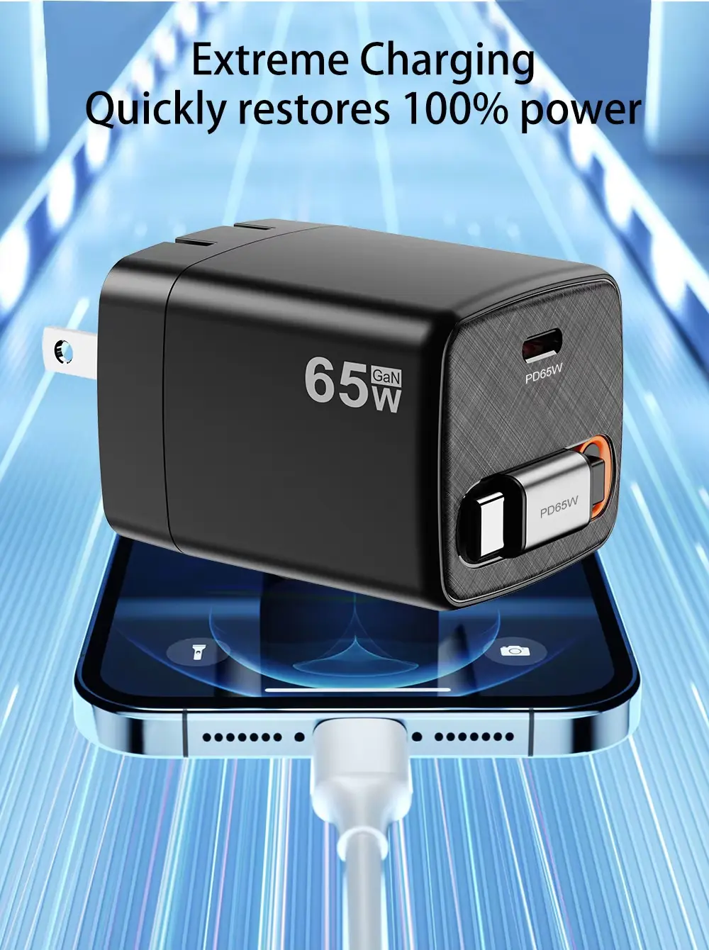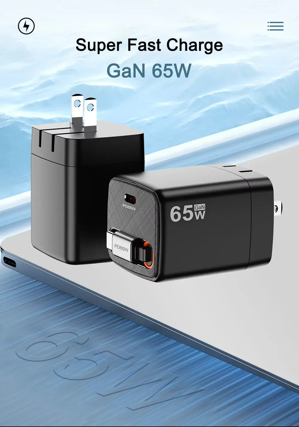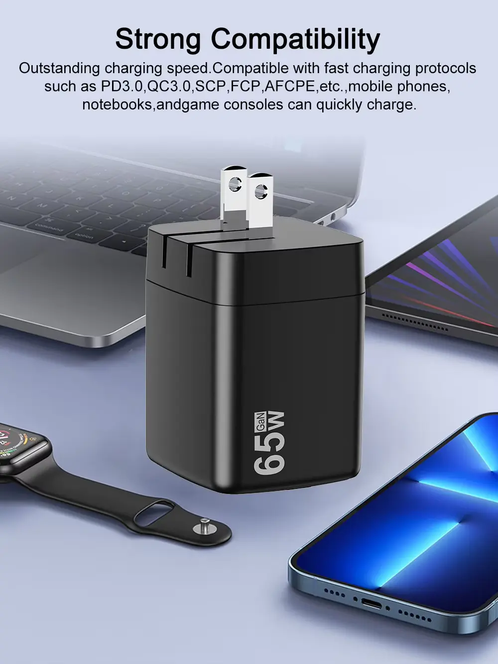 ໂລໂກ້ທີ່ສາມາດປັບແຕ່ງໄດ້ mini 65W PD Gan USB C Cha charger ພັບ USB USB ເຄື່ອງສາກໄຟໂທລະສັບ THER PLUMP USB |
