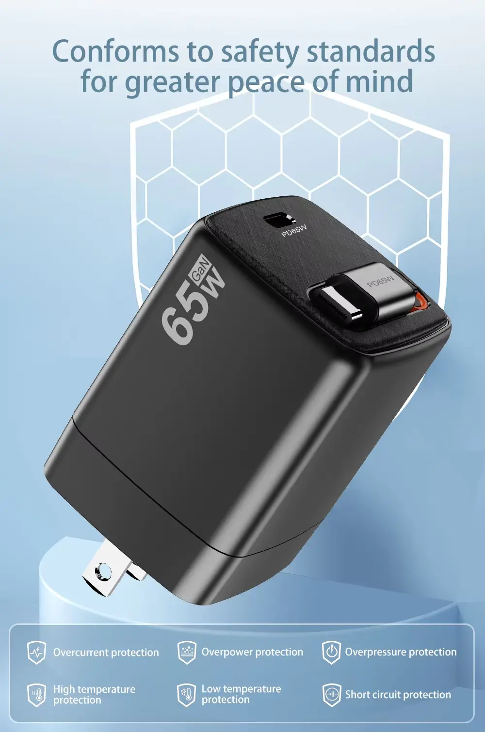 ຄວາມໄວສູງ 65W ສາກໄຟ: LEPTOPS ແລະໂທລະສັບທີ່ມີຄ່າໃຊ້ຈ່າຍໄວ.