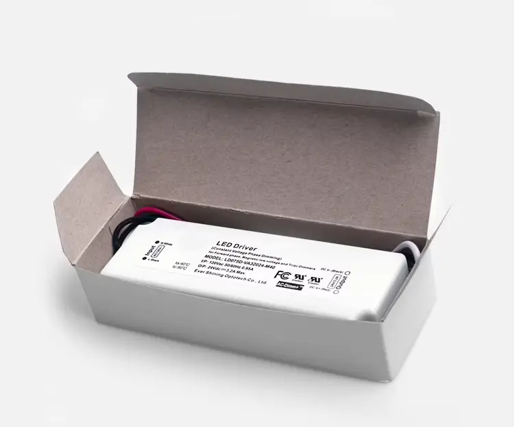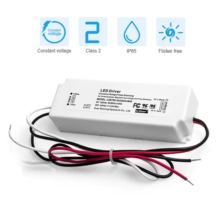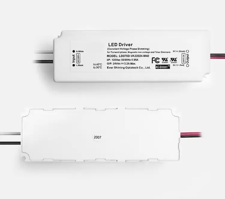 ໄດເວີ LED ແຮງດັນຄົງທີ່ 75W ດ້ວຍ TRIAC Dimming • ຄວາມເຂົ້າກັນໄດ້: ໃຊ້ໄດ້ກັບເຄື່ອງຫຼໍ່ແສງແບບ TRIAC/ incandescent ແບບມາດຕະຖານສ່ວນໃຫຍ່. • ຜົນຜະລິດທີ່ຄົງທີ່: ແຮງດັນຄົງທີ່ (CV) ສໍາລັບລະບົບ LED 12V ຫຼື 24V. • ການຄວບຄຸມທີ່ລຽບງ່າຍ: ເປີດໃຊ້ການຫຼຸດແສງແບບເຕັມຮູບແບບ, ບໍ່ມີ flicker. • ການປົກປ້ອງທີ່ແຂງແຮງ: ປ້ອງກັນຄວາມຜິດທາງໄຟຟ້າໃນຕົວ. • ການນຳໃຊ້ແບບປົກກະຕິ: ເໝາະສຳລັບແຖບ LED, ໂມດູນ, ແລະໄຟຕິດຕາມ.