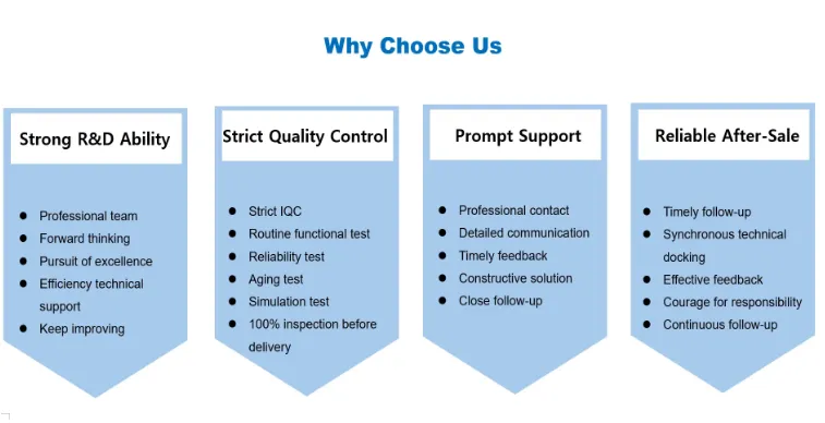 ຜະລິດຕະພັນຂອງພວກເຮົາເນັ້ນໃສ່ມາດຕະຖານສາກົນຢ່າງເຂັ້ມງວດແລະມາດຕະຖານອຸດສາຫະກໍາສູງຈາກການອອກແບບເພື່ອການພິສູດເຖິງການຜະລິດຈໍານວນຫລາຍ, ແລະປະຕິບັດຕາມມາດຕະຖານສາກົນເຊັ່ນ CE, FCC, RoHS, ETL ແລະອື່ນໆເພື່ອຮັບປະກັນຄວາມເຂົ້າກັນໄດ້ແລະປະຕິບັດຕາມໃນຕະຫຼາດໂລກ.