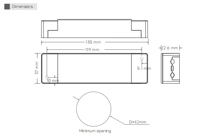 130×37×22.6ມມ(L×W×H) |