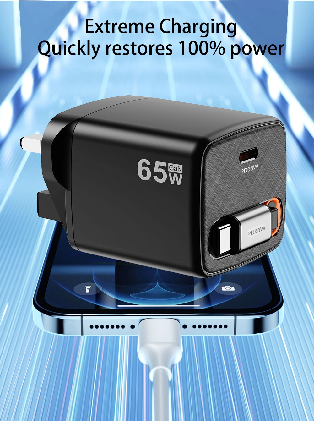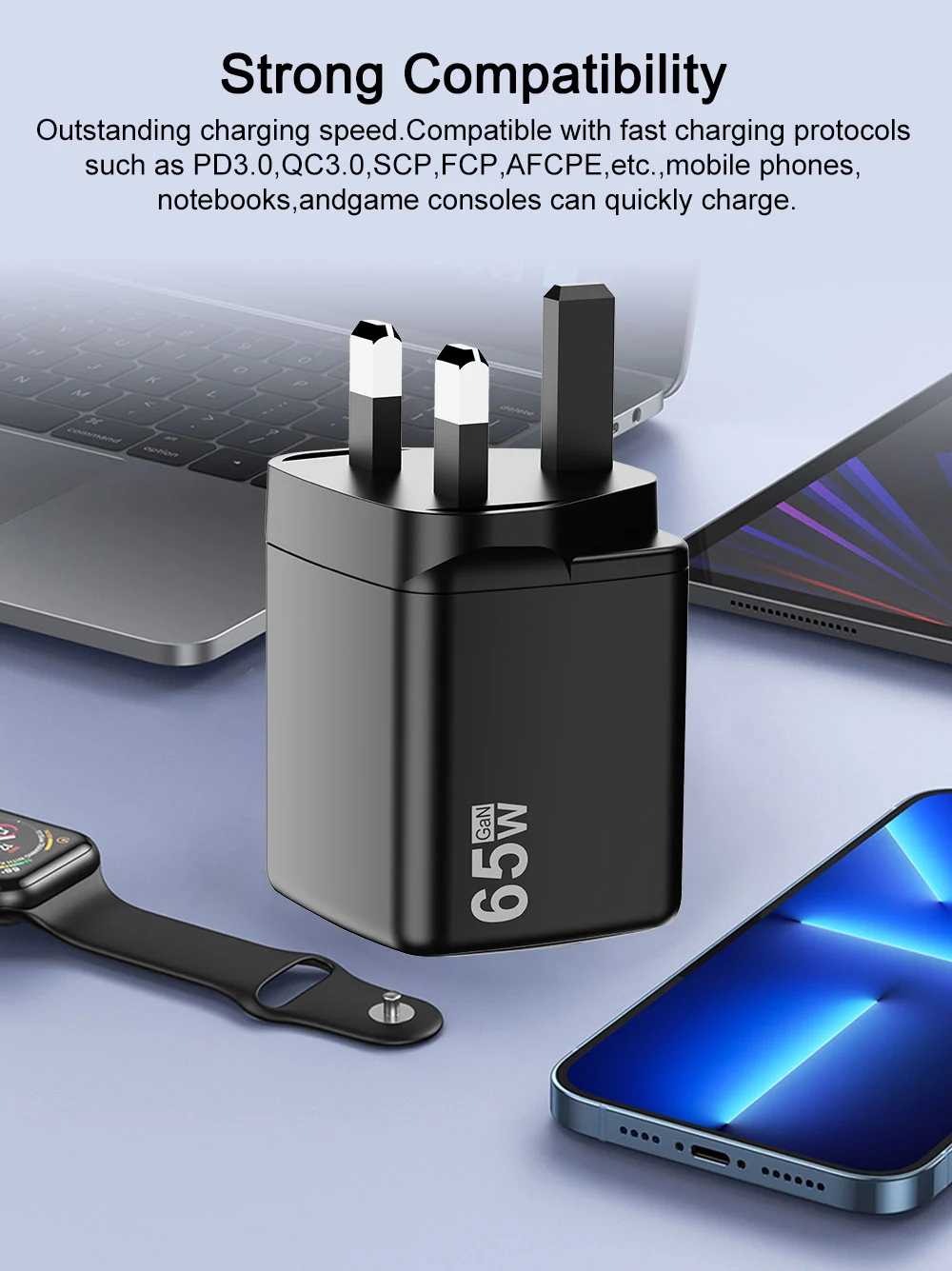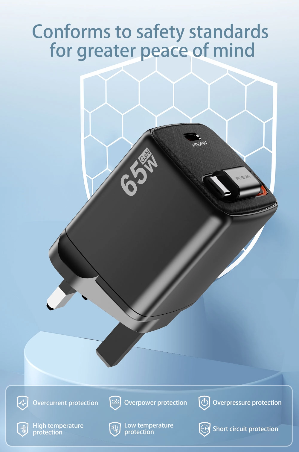 - ການສາກໄຟດ່ວນ: ຜົນຜະລິດ 65W ຕັດລົງໃນເວລາສາກໄຟ, ການເຮັດໃຫ້ອຸປະກອນຂອງທ່ານໃຊ້ໄຟຟ້າໄດ້ໄວ.